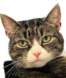 Beyond food, her interests include bird watching and curling up in a lap to be petted.